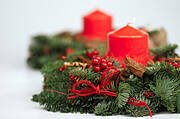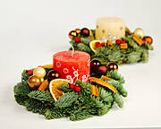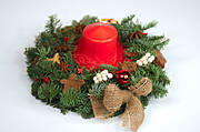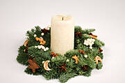 Nie jestem zbyt biegła w sztuce florystycznej. Ilekroć usiłowałam wykonać stroik ze świeżych świerkowych gałązek, kończyło się jego rozmontowaniem lub w najlepszym razie położeniem w niezbyt eksponowanej części mieszkania. Być może do pewnych rzeczy trzeba dojrzeć i na stroiki mocowane na gąbce florystycznej lub ustawiane na stelażu z kory nie nadszedł jeszcze czas. Na szczęście na rynku dostępne są bardzo wygodne półprodukty w postaci wianuszków z jodłowych gałązek, które stanowią wspaniałą bazę stroika. Wystarczy dobrać ulubione dekoracje oraz dokupić świeczkę, którą umieszczamy w środku.
