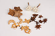 Aby stroik wyglądał efektownie warto łączyć materiały naturalne ze sztucznymi, np. anyż z różnokształtnymi dekoracjami, gwiazdki z kory drzewnej lub łupin kokosa z gwiazdkami brokatowymi w kontrastowym kolorze. Gdzie jest granica pomysłowości i dobrego smaku, musicie ocenić sami. Niektórzy lubią stroiki krzykliwe, inni stonowane i jednolite kolorystycznie. Zdecydujcie, do której grupy należycie i użyjcie materiałów, jakie podpowiada Wam gust.