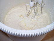 Cukier puder przy pomocy miksera dobrze wymieszać z masłem. Dodać ekstrakt waniliowy i wodę. Wymieszać na puszystą masę.