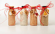 Domowe nalewki i likiery mogą stać się wspaniałym prezentem świątecznym. Wymagają jednak specjalnego opakowania. Oczywiście można nakleić na butelkę ozdobną etykietę. Ale o wiele lepiej, a przede wszystkim piękniej, jest ozdobić butelkę sznurkiem. Przydadzą się także rafia, farby akrylowe oraz pomysłowe zawieszki. No i oczywiście klej.
