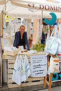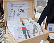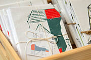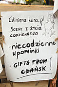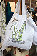 Na miękkich płóciennych ściereczkach do wyboru - portowe dźwigi lub żuraw z ciągnącym się pod nim pochodem śmiesznych Gdańszczan. "Macie więcej?" - pytam z nadzieją, płacąc od razu za oba wzory, ozdobnie owinięte sznureczkiem i skrzętnie opakowane w cudną papierową torebkę z wrzuconą do środka wizytówką. "Nie, tylko te dwa, na próbę" - uśmiechają się dziewczyny z Glinianej Kury, lekko zmęczone upałem i wielogodzinną pracą. Z podziwnem i konsumenckim apetytem patrzę na torbę z motywem dźwigów, który przed chwilą kupiłam na ściereczce. Torba jest niezwykła, możliwe że jeszcze po nią wrócę - wszak lokalny patriotyzm nie pozwala inaczej.