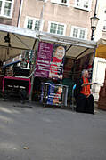 Dziurawa reklama Jarmarku Świętego Dominika, do której można wsadzić głowę i cyknąć sobie pamiątkowe zdjęcie, usadowiła się tuż obok Katowni, niemal symbolicznie sugerującej męczarnie czekające kupujących, lub drwiącej z mąk przed chwilą przez turystów przebytych podczas prób przepychania się między straganami, upchanymi na Gdańskich uliczkach jak sardynki w puszce.