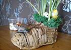 Prosty i śliczny. Mnie po świętach Bożonarodzeniowych został taki koszyczek w kształcie buta. To go chyba wykorzystam i zrobię sobie taki. z żonkilami, które zostały mi po stroikach w wydmuszkach.