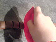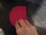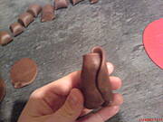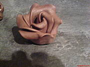 .Gdy w ten sam sposob zrobimy 7 platkow mozemy zabrac sie do formowania rozy.Najpierw robimy paczek.W lewej rece trzymamy paczek.Prawa reka wkladamy waleczek na srodek platka.Całosc przekladamy do prawej dloni.Lewa dłonia zaginamy lewy rog platka(zwrocmy uwage aby czubek byl dokladnie zagniety).Całosc przekladamy do lewej dloni.Prawa reka wkladmy nastepny platek do czubka naszego paczku i uzywajac 2 rak zawijamy w kolo nasze platki..Lekko naciskamy na 3/4 wysokosci paczu nadajca mu ksztalt