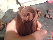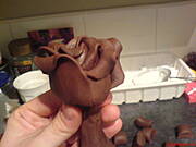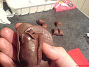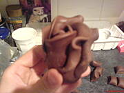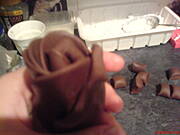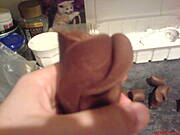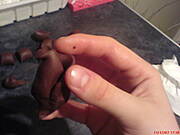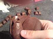 Regalice po wyjeciu z opakowania najpierw ugniatamy.Nadajemy mu przez to wieksza plastycznosc.Nastepnie formujemy walek i za pomoca łopatki (owalnej strony)"tniemy walek"na male czesci
