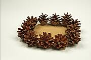 Świecznik z szyszek można dowolnie ozdobić, na przykład koralikami nawleczonymi na żyłkę. Taka ascetyczna dekoracja może prezentować się elegancko nawet na wigilijnym stole.