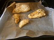 Do nagrzanego piekarnika wkładamy piersi w blaszce wyłożonej papierem do pieczenia.