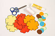 Zacznijcie od wycięcia identycznych w kształcie i rozmiarze kwiatków, najlepiej różnokolorowych.