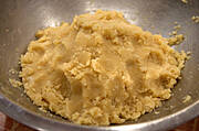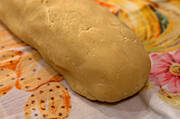 Migdały zalewamy wrzątkiem, odczekujemy kilka minut, zakładamy silikonowe rękawice kuchenne i przystępujemy do zdejmowania skórek. Wbrew pozorom jest to czynność nie zajmująca wiele czasu i bardzo łatwa, wystarczy migdały ściskać między palcami, a same powyskakują z brązowych osłonek. Można oczywiście kupić migdały łuskane. Po osuszeniu mielimy je na jak nawyższych obrotach w młynku do kawy lub w specjalistycznej maszynie przeznaczonej do mielenia ziaren i orzechów. Uzyskana masa musi być gładka, na granicy sypkości i masła migdałowego. Powinna dawać się zagniatać i formować, lekko przy tym krusząc. Drobinki migdałów w żadnym wypadku nie mogą być wyczuwalne między opuszkami palców. Niestety niewiele jest mikserów, które poradzą sobie ze zmieleniem migdałów na masę marcepanową. Dobra maszyna to podstawa. Nie należy mielić migdałów za pomocą maszynki do mielenia mięsa ani ręcznego blendera do miksowania zup.