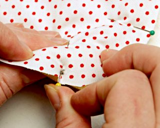 Podwijając lamówkę, możesz dla ułatwienia pracy, przypinać szpilkami zaginany materiał.