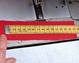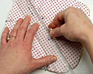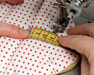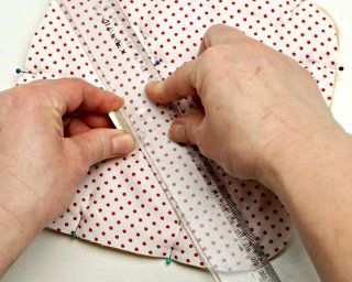 Jeżeli zaznaczenie linii pikowania kredą jest niewidoczne, możesz pomagać sobie centymetrem krawieckim, odmierzając 3,5 cm od poprzedniej linii pikowania.