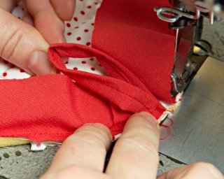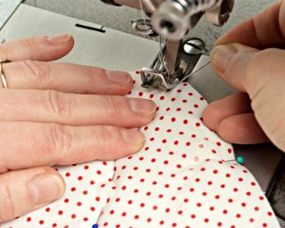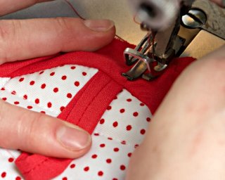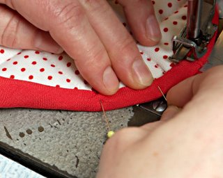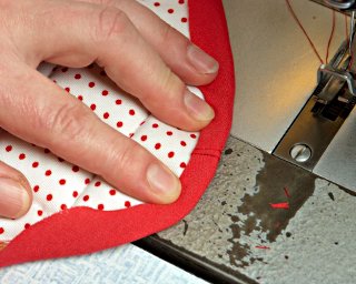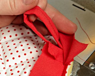 W narożnikach lekko "wdaj" materiał pod stopkę (podsuwaj go pod stopkę, aby podczas szycia nie tworzyły się nieestetyczne zakładki).