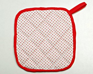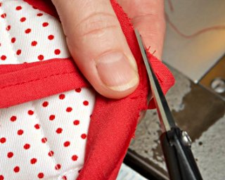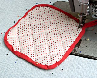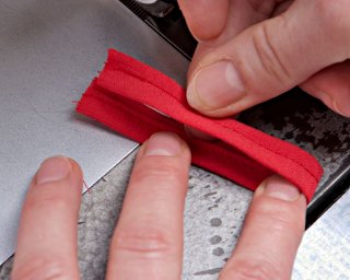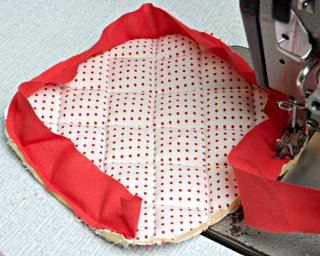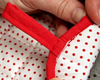 Obszywanie łapki lamówką rozpocznij od narożnika, podginając ok. 1 cm brzegu.