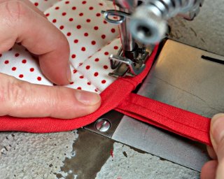 Zakończ przyszywanie lamówki założeniem, jak na początku.