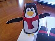 1. Wydrukować szablon (kliknij tutaj) na grubszym papierze bądź na zwykłym. Wyciąć pingwina i obie płetwy. Zrobić dziurki w dwóch górnych kółkach i przewlec cienką wstążkę bądź nitkę. Związać.