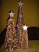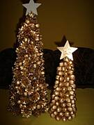 Choineczki z kasztanów wyglądają pięknie. Niestety po roku przechowywania chciałabym ostrzec tych, którzy chcieliby wykonać choinki z kasztanów. Kasztany wysychają, kurczą się, a co za tym idzie odpadają i farba odpryskuje. Także są to choineczki na jeden sezon! Choinki z orzechów i szyszek przechowują się wzorcowo i mogą zachwycać przez pare lat.