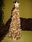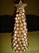 Z brystolu robimy stożek, zszywamy zszywaczem lub sklejamy taśmą bezbarwną. Gdy mamy gotowy stożek przyklejamy np. szyszki wokół stożka, zaczynając od dołu. Bierzemy szyszkę i na "spód" szyszki nakładamy klej i przyklejamy. I tak do samej góry. Gotową choinkę malujemy farbą w sprayu, odstawiamy do wyschnięcia i dekorujemy według własnego pomysłu. Pięknie wyglądają gdy zawiesimy na nich małe światełka diodowe.
