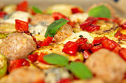 Podczas pieczenia pizzy obowiązuje zasada oszczędności. Nie nakładamy zbyt wielu mokrych i tłustych składników, szczególnie pieczarek lub nieodparowanego sosu, ponieważ wilgoć może podczas pieczenia wsiąkać w ciasto, które w efekcie stanie się miękkie, maziste i jakby "ugotowane".