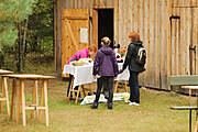 Tuż zaraz, w kąciku pod szopą, przycupnęły miłe pani z Koła Gospodyń Wiejskich z Wąglikowic, które poinformowały, że degustacja już dobiegła końca i teraz można tylko kupić. Skwapliwie nabyliśmy wielki kawał domowej szarlotki oraz dwie blachy drożdżówki ze śliwkami. Oba ciasta pyszne, choć szkoda, że pieczone w przeddzień imprezy.
