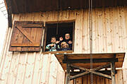 Najpierw powitał nas nowy budynek ze świeżym szyldem Muzeum, a w środku kilka starych wozów, uprzęży, wystawa Dobrówki Tyślewicz "Ślady i tropy" oraz sklep z pamiątkami, który okazał się jednocześnie być kasą. Jako w życiu nic nie ma za darmo, zakupiliśmy bilety i ruszyliśmy.