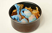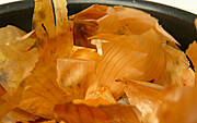 Pamiętam swoje zdziwienie, gdy mając lat zaledwie kilka, po raz pierwszy na własne oczy ujrzałam cebulowe czary, które zwykłe jajko zmieniały w niezwykłą pisankę. Na dodatek wyjmowaną ze starej pończochy, w której przycupnęła także natka pietruszki. Wcześniej mama, z tajemniczym uśmiechem, upychała w garnku mnóstwo cebulowych łusek, po które wyprawialiśmy się do piwnicy, bo tam w latach siedemdziesiątych niemal każdy trzymał worki z warzywnymi zapasami. W tych łuskach ukrywała "jajka pończoszanki", zalewała wodą i gotowała kilkanaście minut. Gdy woda wystygła, brała łyżkę i wyławiała mokre dziwolągi, które dopiero po zdjęciu ubrania ukazywały swoją urodę. Hokus pokus, i spod pietruszkowego listka wyskakiwał śliczny wzorek. "Ojej!" - krzyczałam i klaskałam w rączki, zachwycona cebulowymi czarami. Ciemnopomarańczowe i brązowe, w zależności od czasu, jaki spędziły w cebulowej zupie, sadowiły się na honorowym miejscu na Wielkanocnym stole, z żalem podbierane, by wskoczyć do chrzanowego barszczu, czy świątecznej sałatki. Najładniejsze wkładało się do koszyczka i niosło do kościoła w towarzystwie chleba, kiełbas i gałązek bukszpanu, którego zapachu nie lubię do dziś.Wracam do tej tradycji z prawdziwą przyjemnością, w naturalny sposób barwiąc wielkanocne symbole życia i obfitości. Zbieranie łusek zaczynam z dużym wyprzedzeniem, na zabarwienie tuzina jaj potrzeba bowiem kilku dużych zgniecionych garści tych cebulowych garniturów. Czym więcej łusek, tym ciemniejszy kolor pisanek. Jeśli zamiast intensywnego brązowo-czerwonego koloru wolimy jasnopomarańczowy, wystarczy, że zanurzymy na kilka minut ugotowane jajka o białych skorupkach w jeszcze gorącej cebulowej wodzie. Interesujący efekt pojawi się, gdy skorupki ugotowanych białych jajek potłuczemy i zamoczymy na 5 minut w zimnej wodzie, w której gotowaliśmy cebulowe łuski. Po obraniu na jajkach widoczny będzie w miejscach pęknięć marmurkowy wzorek.