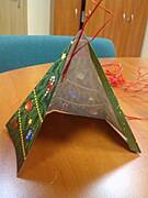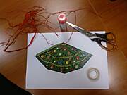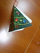 1. Wydrukować choinkę (kliknij, aby wydrukować szablon) na twardym bądź zwykłym papierze. Wyciąć drzewko i złożyć wzdłuż wszystkich czterech linii.
