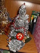 Gdy dobrze już wyschnie nasza choinka spryskujemy ją złotym lub srebrnym lakierem w sprayu, lub ozdobnym brokatem.