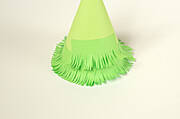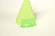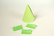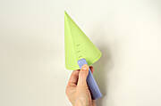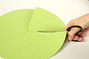 Poproś malucha, żeby poszukał w kuchni dużej miski - odrysujcie od niej koło na zielonym brystolu. Zaznaczcie środek i wytnijcie niepotrzebną ćwiartkę koła. Zwińcie pozostałą część w stożek. Brzegi złączcie za pomocą zszywacza.