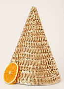 Zaczynając od podstawy stożka i przesuwając się kolejnymi poziomami ku górze, przyklejaj makaron, starając się zachować równe odstępy między "gałązkami". Uważaj, aby nie poparzyć się podczas klejenia. Gdy cała przestrzeń zostanie wypełniona makaronem, poczekaj aż klej całkowicie zastygnie i zdejmij klejowe nitki, które otuliły pajęczyną Twoją choinkę. Spryskaj choinkę z każdej strony farbą (najlepiej jest to robić na dworze na warstwie starych gazet).