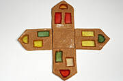 twarde kolorowe landrynki, mąka do posypywania blatu, wydrukowany szablon lampionu.
