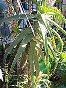 Z rośliny od 3 do 5 lat zrywamy spory liść, oczyszczamy z kurzu, miksujemy w 1/2 szklanki cieplej, przegotowanej wody. Do tego roztworu dodajemy 1 łyżeczkę miodu pszczelego. Powstaje taki śluzowaty płyn, który nanosimy na lekko zwilżone włosy. po nałożeniu odżywki na włosy otulamy głowę czepkiem foliowym. Po 20 -30 minutach odżywkę spłukać, włosy umyć szamponem rozcieńczonym pół na pół z ciepłą wodą.