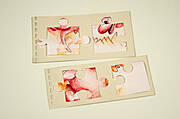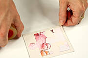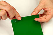 Każdy element umieść między dwiema warstwami przezroczystej okładki. Przytnij i zabezpiecz brzegi taśmą klejącą, aby do środka nie dostał się piasek.