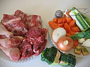 3 - 4 gatunki mięsa ( koniecznie z kością lub dodatek kości ) włoszczyzna , duuużo włoszczyzny - najlepiej świeżej