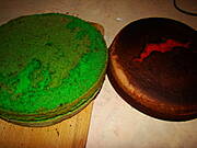 Następnie wyrównujemy górę tak aby była płaska i przekrajamy na pół aby z każdego powstały dwa krążki.