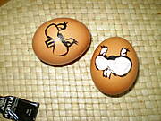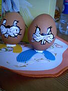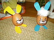 Wydmuszki trzeba dobrze umyć i wysuszyć. Malujemy na wydmuszkę buźkę króliczka.