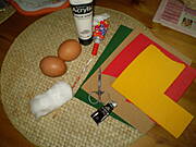 Przyklejamy podstawę, gdy wyschnie przyklejamy uszka i watę.