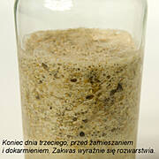 Wiecie już, jak wyhodować zakwas żytnio-razowy. Na koniec bardzo ważna uwaga - najczęściej ciasto chlebowe przygotowane na bazie młodego zakwasu wymaga więcej czasu podczas wyrastania niż ciasto, do którego użyto zakwasu dojrzałego i stabilnego. Czekajcie więc cierpliwie aż Wasz przykryty czystą lnianą ściereczką bochenek podwoi swoją objętość. W niektórych przypadkach może to trwać nawet 10 godzin. Być może do upieczenia pierwszego chleba będzie też potrzebna nieco większa ilość młodego i jeszcze słabego zakwasu.