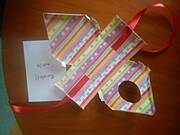 Drukujemy szablon i wycinamy (ja wykorzystuję papier do drukarek 250g/m2). Zginamy w miejscach przerywanych linii. Robimy nacięcia na tasiemkę (tyle aby przeszła).