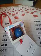 Takie życzenia można też wysłać. Wtedy domek należy zrobić ze sztywniejszej tektury , wydmuszkę owinąć w folię bąbelkową a całość włożyć jeszcze do koperty bąbelkowej. Można też wydmuszkę zawinąć w folię bąbelkową a cały domek spakować do kartonika. Jeśli będzie sporo większy to domek też folią bąbelkową owijamy. Aby się nic nie telepało.