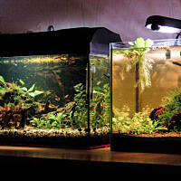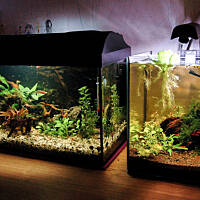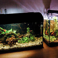 Wkręciłem się w to hobby :) Zaczynam, dopiero się uczę. Po kilku miesiącach kombinacji w końcu zaczyna mi się uzyskany efekt z lekka podobać, a że zaczyna mi się podobać no to się z Wami podzielę. Akwaria, a zwłaszcza to małe dopiero co na dobre wystartowały więc roślinność jeszcze młoda i mała. Mam nadzieję, że to urośnie zamiast zmarnieć.