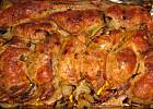 (2008-02-26 21:10)Roladę piekę na blaszce (takiej z wyposażenia piekarnika) na papierze do pieczenia, choć raz piekłam zawijając w folię aluminiową, jednak smak przypieczonej skórki bardziej mi odpowiadał, boczek daję surowy, wędzony.