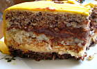 (2010-01-11 20:53)Tak, chodzi o wiśnie w galaretce. Galaretki jest niewiele w stosunku do wisienek toteż powstaje coś w rodzaju powiedzmy "wisienek w żelu". Wisienki w lekko stężonej już galaretce trzeba nakładać miejscowo tylko, no i trzeba podzielić ją na dwie warstwy. Nie powstanie zatem dodatkowa warstwa pt."galaretka z wisienkami" tylko wisienki z odrobiną galaretki wbiją się delikatnie w masę - dokładnie tak jak to widać na zdjęciu.