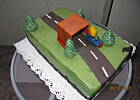 Smaruje pierwszy placek dżemem później budyniem,z deski do krojenia przerzucam ser na ten placek. Kiedy pierwsza operacja kończy się powodzeniem ser smaruje budyniem i na ten budyń kładę dokładnie tak samo (tz. z deski do krojenia)placek posmarowany od spodu dżemem. Następnie całe ciasto smaruję jeszcze budyniem, dekoruje i gotowe.