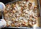 (2020-11-10 10:30)Pychota! Ja na dno naczynia żaroodpornego dałam ryż z sosem pieczarkowym, na to schabik z pieczarkami i boczkiem. Wszystko zalane śmietanką. -