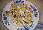 (2012-09-09 18:46)Zrobiłam dziś trochę zmodyfikowaną wersję z dobrą przesmażoną kiełbasą zamiast kurczaka. Dodałam też przesmażoną z papryką i czosnkiem cebulę i pokrojonego w koskę pomidora.