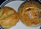 Dałam połowę mleka zamiast wody. Dla porównania wklejam zdjęcie obu bułek, widać różnicę w wielkości, z tej samej ilości ciasta wykonane (70 g, ważyłam)- a swoją wersję pozwolę sobie zapisać.