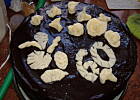 Wierzch udekorowałam bitą śmietaną,którą następnie posypałam wiórkami czekoladowymi i mielonymi orzechami.