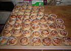 Wyszlo mi 50 malych babeczek. Zrobilam nastepujace 1) czekoladowe ze starta czekolada 2) cynamonowe ale bez kardamonu bo nie mam 3) ze starta skorka z pomaranczy plus rodzynki 3) z cukrem waniliowym i zwyklym. Pokrojone babeczki posypywalam zwyklym cukrem bo nie mialam gruboziarnistego.
