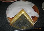 Polałam ją lukrem cytrynowym (cukier puder + sok z cytryny).Zjedliśmy zanim dobrze ostygła.MNIAM...MNIAM...
