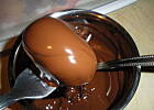 najpierw spód maczam w czekoladzie następnie umieszczam batonik na widelcu i polewam go duża ilościa czekolady ,po czym lekko obtrząsuje czekolade z batonika żeby nie było jej za dużo (udeżam lekko rączką od widelca w rant pojemniczka z czekolada ) i układam batoniki na papierze .Robię tak jak na zdjęciu poniżej tylko na nim oblewałam śliwkę